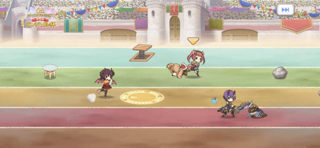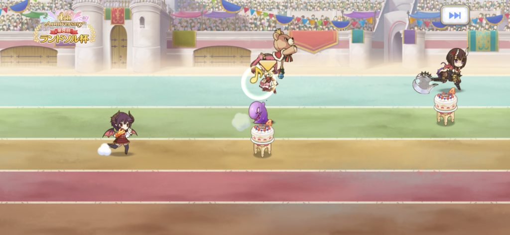 その後は一気に超加速するケーキを食べてそのままゴールかと思いきや妨害用の岩に引っかかってしまい、その隙をついたグレアが抜き去ってしまいそのまま2位に・・・