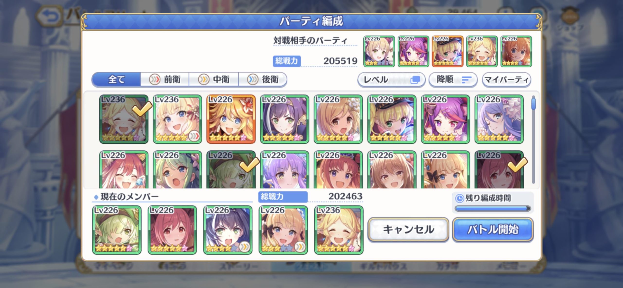 最終的には暫定的な1位を取ることには成功したのですが、それにかかった時間は休憩時間合わせても4時間以上かかっており、90戦は重ねましたがそのうち50戦以上は敗北しており、その敗北の大半は50位~10位までの間にずっと相性が悪い編成のプレイヤーやリセット時に仮で入れられていたNPCのありえないレベルの暴力に叩き潰されたりしていたため、何度か休憩を重ねて気分転換をしてから挑んでいくことに・・・