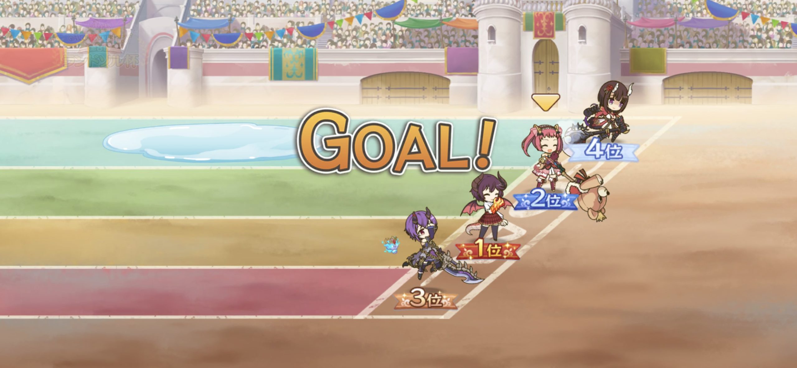 その後は一気に超加速するケーキを食べてそのままゴールかと思いきや妨害用の岩に引っかかってしまい、その隙をついたグレアが抜き去ってしまいそのまま2位に・・・